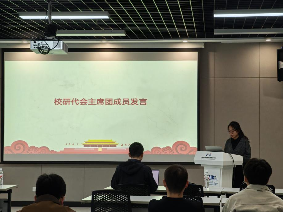 团委向大会的召开表示热烈祝贺。他指出研究生代表大会是研究生依法依规参与学校事务的一个重要途径,愿同学们在科研之余,能够积极参与公共事务,将个人发展融入集体事业,在服务同学、奉献集体中实现自我价值。